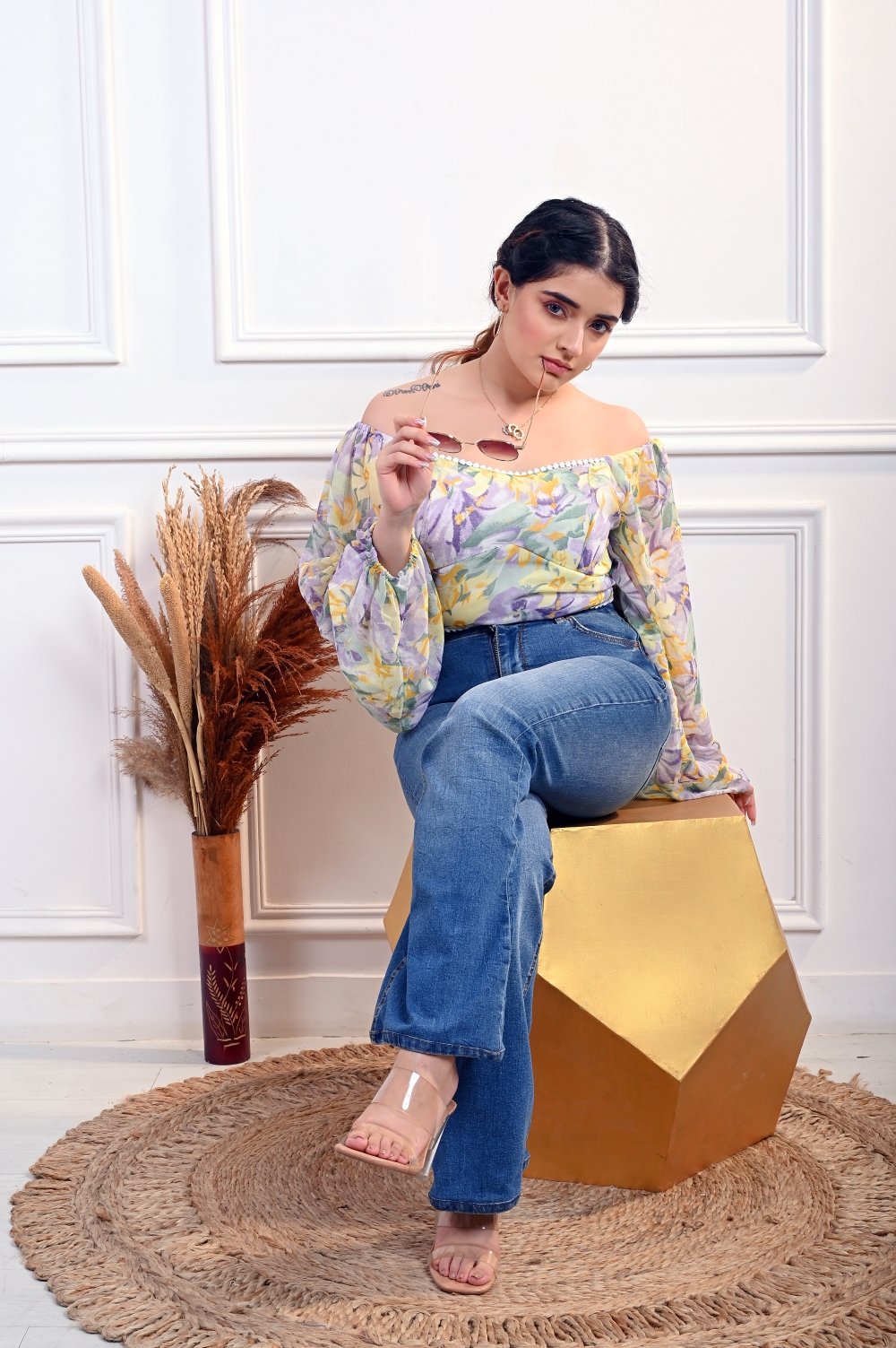 Meet the Luna Crop Top — where feminine charm meets effortless style. Crafted in a soft floral fabric, this top features statement balloon sleeves, a flattering cropped fit, and intricate lace detailing that adds a touch of vintage allure. Whether paired with high-waisted denims or a flowy skirt, Luna brings that sunshine-laced elegance to every outfit. Designed for the modern woman who loves a blend of comfort, grace, and bohemian flair.