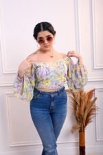 The Luna Crop Top brings dreamy florals to life with romantic balloon sleeves and delicate lace detailing — perfect for brunch dates, getaways, and golden hour moments.