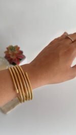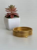 Elegant and versatile, this gold-tone bangle set features a refined textured finish that adds subtle shine and dimension. Lightweight and comfortable, these bangles are perfect for stacking or wearing solo, making them ideal for everyday wear or festive styling.